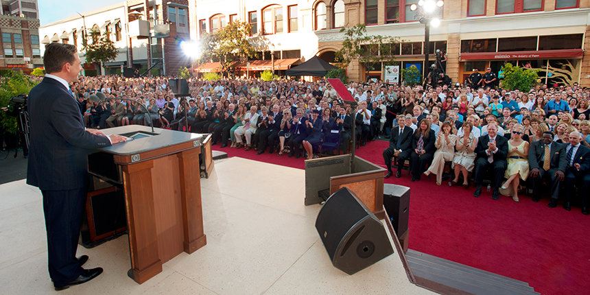 Speaking on behalf of the interfaith community, Pasadena Ministerial Association President Dr. Nicholas Benson also took to the stage. “For all of Pasadena,” he said, “this day represents more than an opportunity to welcome a friend to their new home. This is a Church, an open haven where we have the opportunity to help ourselves, our loved ones and the community. I encourage everyone to make the most of this Church, and like me, take what it has to offer.”