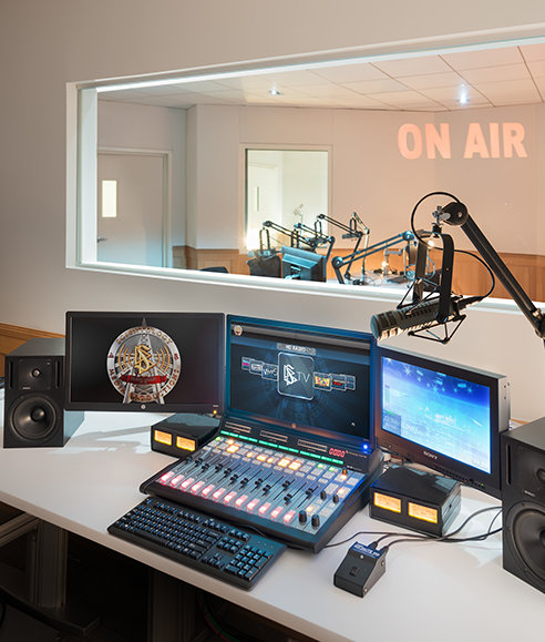 Scientology Media Productions is a five-acre complex near the intersection of Sunset and Hollywood boulevards. Originally built in 1912, the studio includes state-of-the-art sound stages, creative suites, visual effects production areas, editing, audio recording and mixing, foreign language translation and dubbing—every aspect of broadcast and online production.
