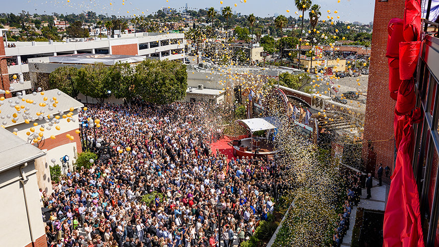 Los Angeles Conservancy President Linda Dishman said that she was “pleased that you were the heirs to this historic studio. The fact this site will continue to be used for media and audio-visual production is especially noteworthy. Because I know you’ve invested significantly in its preservation. And all the more so, considering the extraordinary fact that your Founder began his screenwriting career in Hollywood from an address on this very lot.”