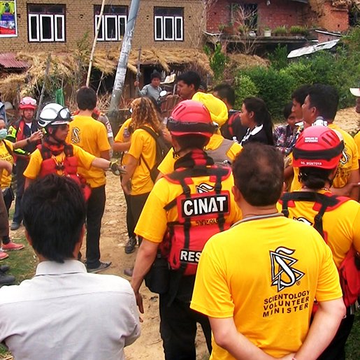 Mr. Miscavige declared during the IAS event, “A permanent VM headquarters has been established in Nepal in resolute reply to all future floods, droughts, cyclonic winds and earthquakes. Seventy VM groups have now been embedded in the fabric of this nation, born in the wake of 420,000 hours of service and more than 2 million assisted and succored in moments of greatest need.”