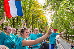 As Mr. Miscavige next told the exuberant multinational crowd, many of them waving the tricolored flag of France, “If ever there was an example of flourishing and prospering in the face of suppression, this is it. Moreover, it emphasizes the fact that, to one degree or another, every IAS Anniversary is a victory celebration.”