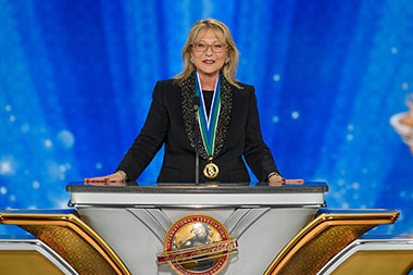 As the global congregation traversed the vibrant ruby-red carpet, they reveled in the enormous Grand Marquee and nearly blew the roof off as Mr. Miscavige arrived onstage to a ground-rumbling ovation lasting minutes. It was an expression not only of admiration for Scientology’s leader, but an acknowledgment of the enormity of the celebration at hand.