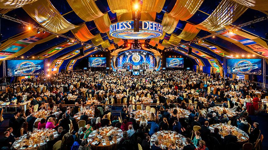 By Saturday evening, the Grand Marquee had stunningly transformed into an elegant ballroom for the annual IAS Patrons Ball. During the majestic black-tie dinner, Mr. Miscavige honored members who have elevated their support, advancing global initiatives across six continents. Uplifting the night in song, the evening featured Grammy Award–winner Mark Isham and an ensemble of performers.