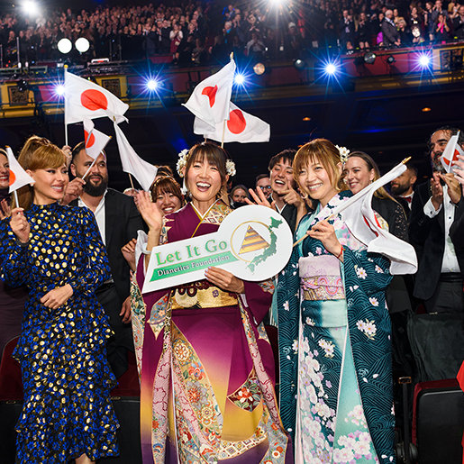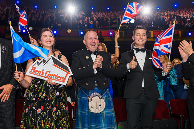 The audience remains on their feet, cheers echoing throughout the hall following achievement after achievement.